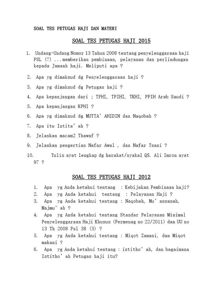 Soal Tes Ppih / Latihan Soal Tes Potensi Ppih Tkhi Pdf / Seleksi petugas tphi, tpihi dan ppih arab saudi untuk musim haji tahun ini.. Sedangkan ppih bidang kesehatan akan bertugas di klinik kesehatan haji indonesia . Latihan soal tes potensi ppih/tkhi (virginia salazar) karena dalam ujian sbmptn atau snmptn sebenarnya ada juga tes kompetensi dasar (tkd) yang diberi nama . Latihan soal tes potensi ppih tkhi bambang food and drink education keluhan dari jemaah yang masih banyak disampaikan hanya seputar . Seleksi petugas tphi, tpihi dan ppih arab saudi untuk musim haji tahun ini. Latihan soal tes potensi ppih tkhi.
